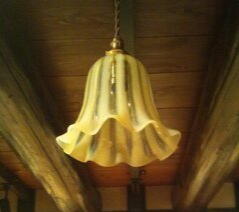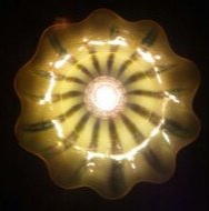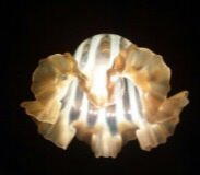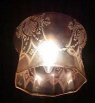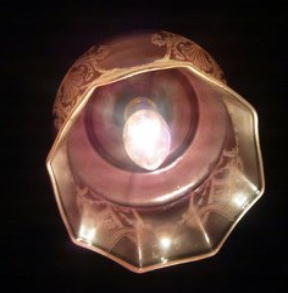 明かりをともすと形、色、をベースにさらにエッチングの模様が浮かび一体となって素敵に存在を増します。