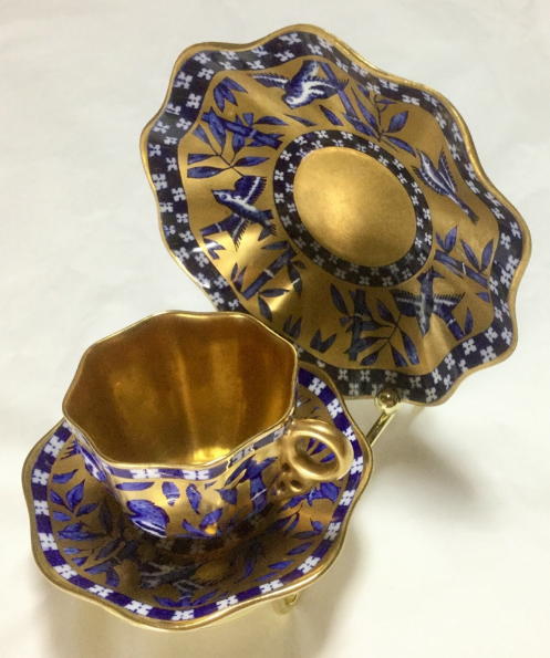 竹と雀豪華金彩デミタスカップ&ソーサー&プレートです。