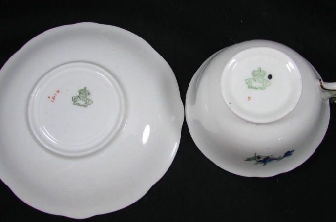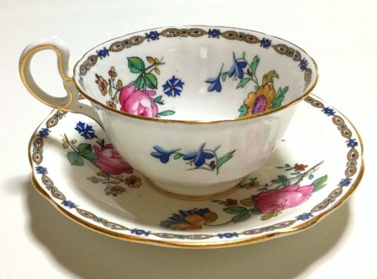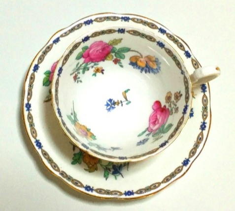 白地に手描きピンク薔薇と花々カップ&ソーサー