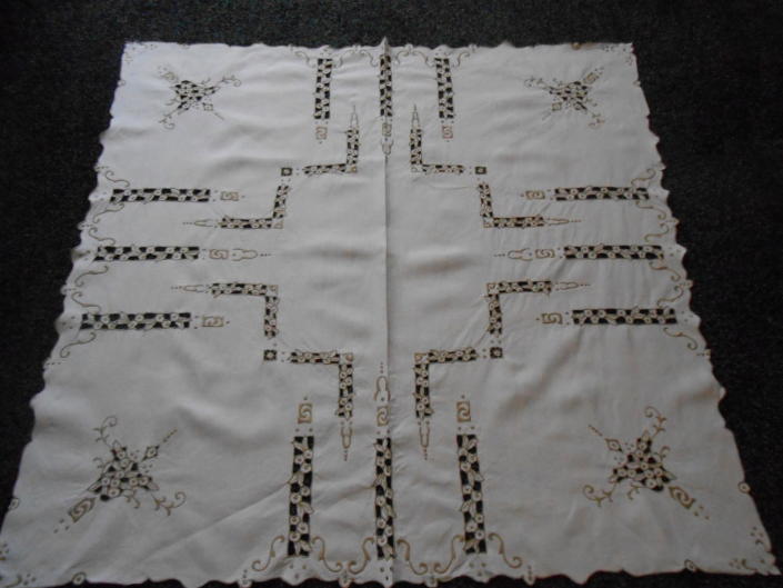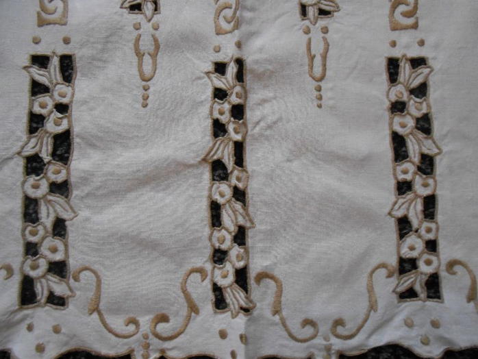 美しいオープンワークリネンテーブルクロス