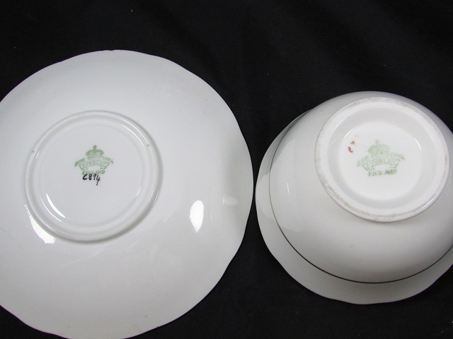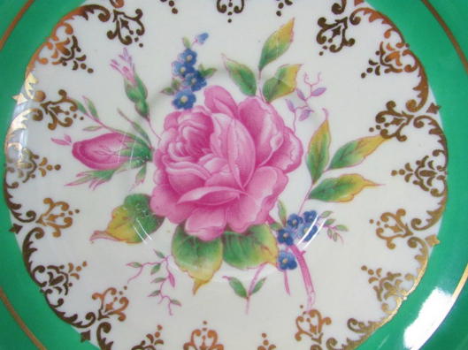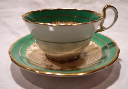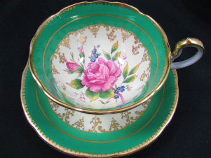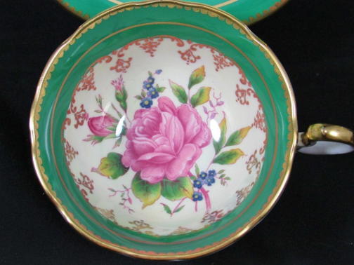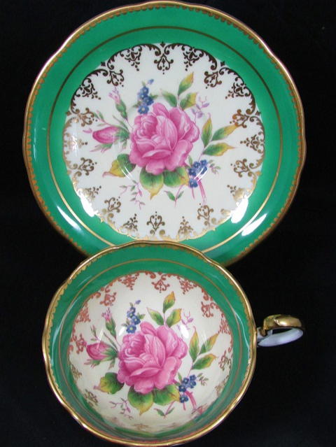 エインズレイエメラルドグリーンにピンク薔薇カップ&ソーサー