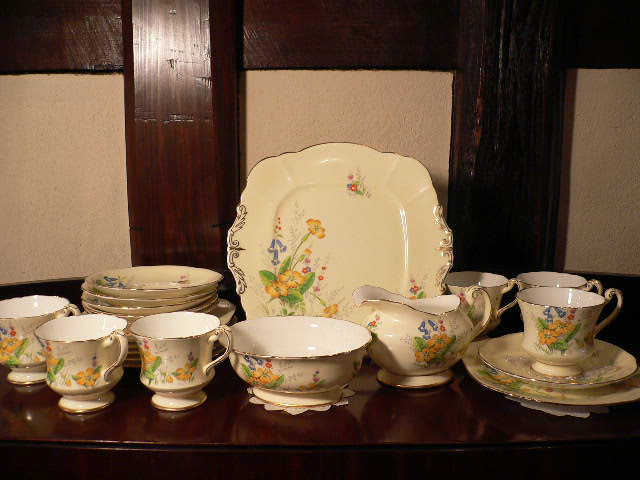 大きなプレート一枚とシュガー&クリーマー、そしてトリオ6客のセットです.