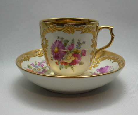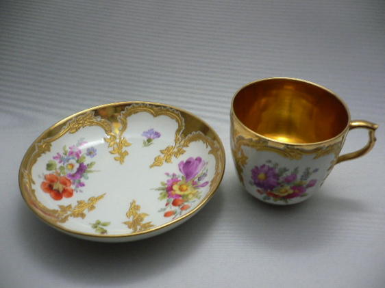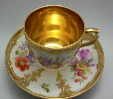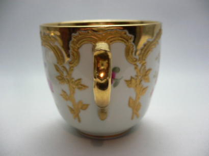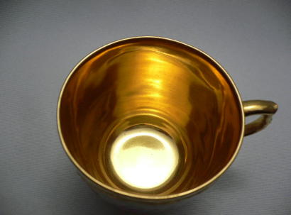 カップ内側や取っ手部分、カップやソーサーの縁部分は光る(落ち着きがあります)金彩で