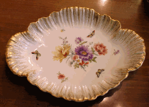 縁の金彩もめずらしく、豪華で、花柄もKPMらしく緻密で色合いも深い感じがします。