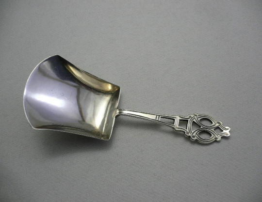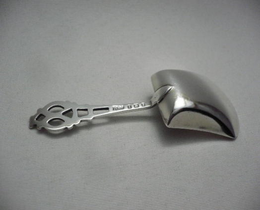 スコップ型のかわらしい純銀のキャディースプーンです。