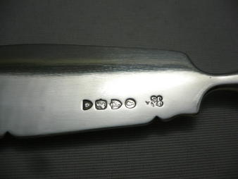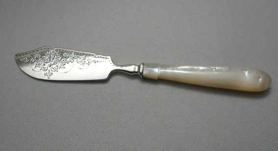 純銀部分はツタのような草花の彫があり、持ち手の柔らかな白と相まって