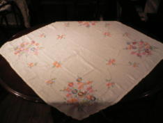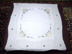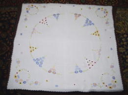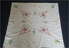 バラのパッチワーク&手刺繍テーブルクロス イギリス ビンテージ・コットン サイズ:80cm×80cm SOLD