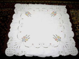 レース縁白一色テーブルクロス イギリス ビンテージ・コットン&レーステーブルクロス サイズ:cm×cm ¥6800