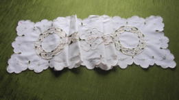 カットワーク& 手刺繍: アンティークテーブルランナー イギリス アンティーク・刺繍 コットン サイズ:30cm×120cm SOLD