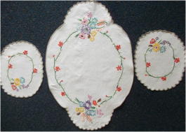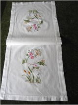 花と蝶刺繍 テーブルランナー イギリス ビンテージ・刺繍・コットン サイズ:39cm×95cm SOLD