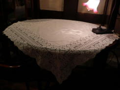 美しいオープンワーク リネンテーブルクロス イギリス ビンテージ・刺繍・リネン ¥6800