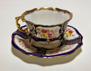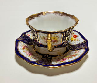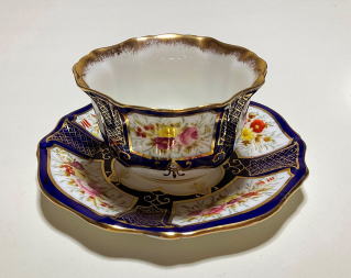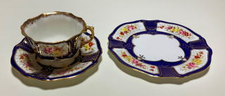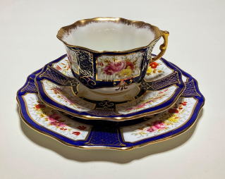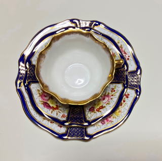 白磁に紺色の窓がとても映えその中に花々が描かれています。